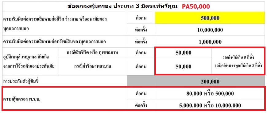ประกันภัยประเภท 3 แผนมิตรแท้ทวีคูณ เบี้ยประกันเริ่มต้น 2,299.- ประกันภัยประเภท 3 แผนมิตรแท้ทวีคูณ พลัส PA50,000 บาท เบี้ยประกันเริ่มต้น 2,600.- ประกันภัยประเภท 3 แผนมิตรแท้ทวีคูณ พลัส PA100,000 บาท เบี้ยประกันเริ่มต้น 2,800.- |