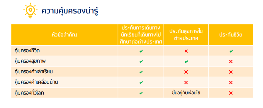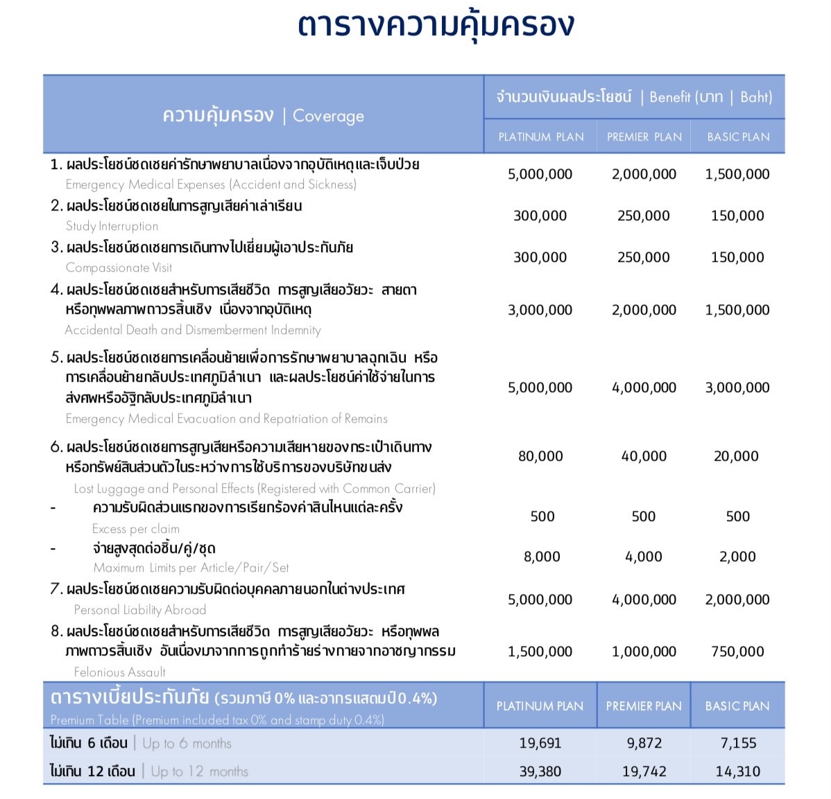 |รายละเอียดความคุ้มครองประกันภัยเดินทางศึกษาต่อต่างประเทศ