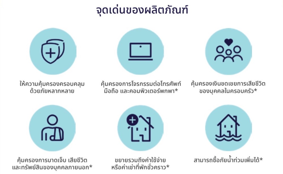 | ตอบสนองชีวิตในบ้านรอบด้านในยุคดิจิตอล ให้บ้านอบอุ่นมั่นคงยิ่งขึ้น ไม่หวั่นแม้ต้องพบกับไฟไหม้ พายุแรง ่ แผ่นดินไหวหรือการโจรกรรม ด้วยประกันภัยที่อยู่อาศัย LMG Home Value ที่มี 5 ความคุ้มครองหลักดูแลบ้าน และทรัพย์สิน เพิมเติมด้วย 5 ความคุ้มครองพิเศษ รวมถึงคุ้มครองโทรศัพท์มือถือและแลปทอปจากการโจรกรรม และรองรับค่าใชจ่ายระหว่างซ่อมแซมบ้าน |
