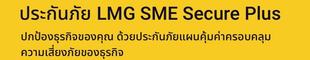 | | แผนประกันภัย LMG SME Secure Plus ให้ความคุ้มครองครอบคลุม สําหรับธุรกิจขนาดกลางและขนาดย่อม 3 กลุ่ม ได้แก่ |  |  | กลุ่ม S : สํานักงาน คลินิก ร้านอาหาร ร้านกาแฟ ร้านเบเกอรี่ ร้านสัตว์เลี้ยง ร้านขายดอกไม้ ร้านขายหนังสือ หอพัก เกสท์เฮ้าส์ ฟิตเนส โรงรับจํานํา สถานศึกษา สมาคม ร้านเสริมสวย