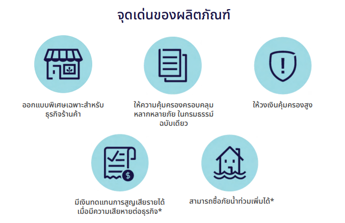 | คุ้มค่าเหมาะสมกับลักษณะธุรกิจเฉพาะคุณ ด้วยความคุ้มครองทรัพย์สินจากความเสียหายต่างๆ ตลอด | |