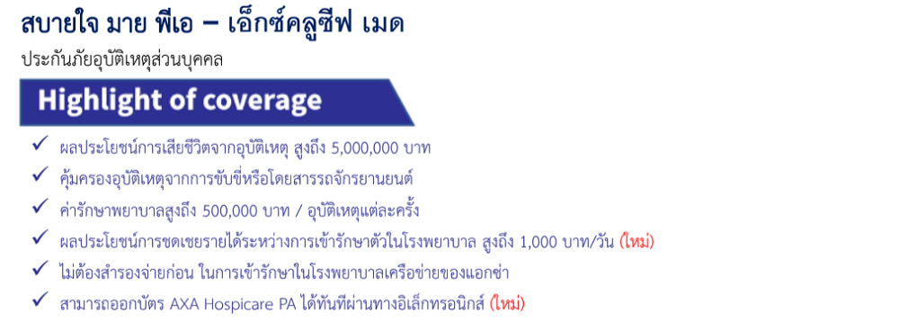 | 6. แอกซ่าขอสงวนสิทธิ์ในการเปลี่ยนแปลงข้อกำหนด เงื่อนไขการรับประกันรวมถึงเบี้ยโดยมิต้องแจ้งให้กราบส่วงหน้า | |||||||||||||||||||||||||